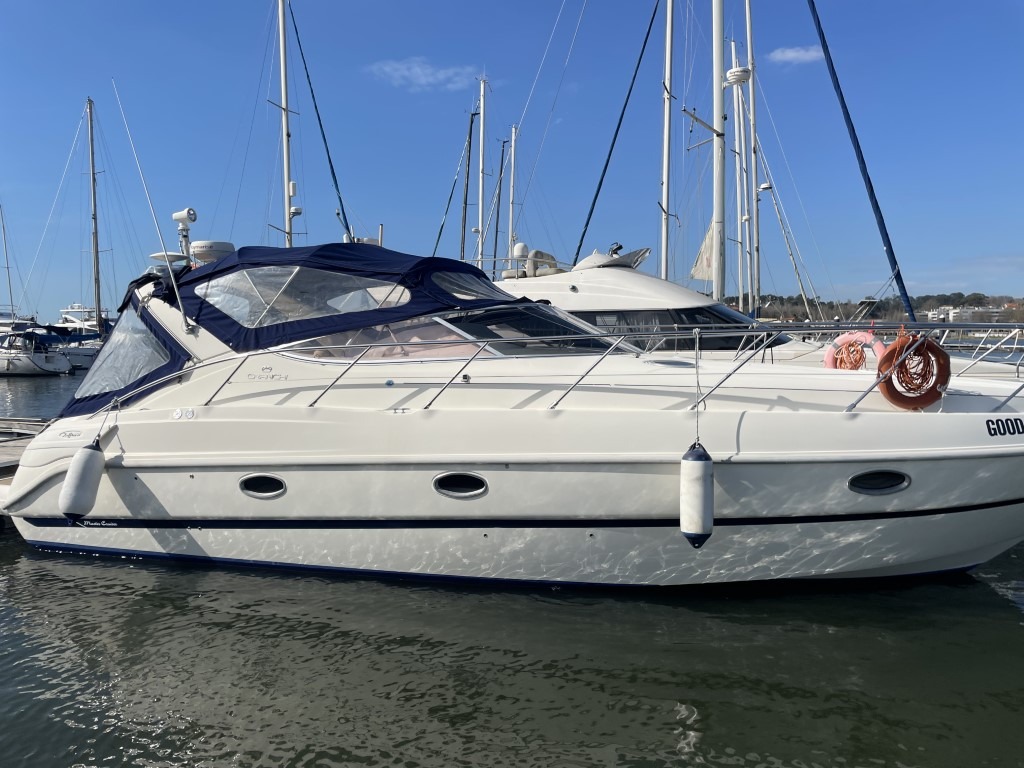 Um cruiser elegante e robusto, que combina na perfeição desempenho, conforto e modernidade. Equipado com dois motores Volvo Penta KAD 43 de 230 HP, este iate garante uma navegação suave e fiável, sendo a escolha ideal tanto para cruzeiros costeiros como para estadias prolongadas no mar. Este modelo dispõe de um layout com duas cabines, garantindo total privacidade e conforto. O salão é luminoso e espaçoso, com uma área de estar acolhedora, mesa central e uma cozinha totalmente equipada a estibordo, incluindo fogão, micro-ondas, frigorífico e pia dupla. A casa de banho está bem equipada, contando com sanita elétrica e um duche com água quente e fria. A cabine de popa oferece uma ampla cama de casal independente, com generoso espaço de arrumação. O cockpit conta com uma mesa amovível, assentos confortáveis e um amplo solário à proa. A plataforma de popa em teca permite um acesso fácil à água, estando equipada com uma escada e duche. Entre as comodidades adicionais, destacam-se uma uma copa exterior com frigorífico e banca, uma chaise longue e o posto de comando ajustável a EB, garantindo uma experiência de navegação confortável.
